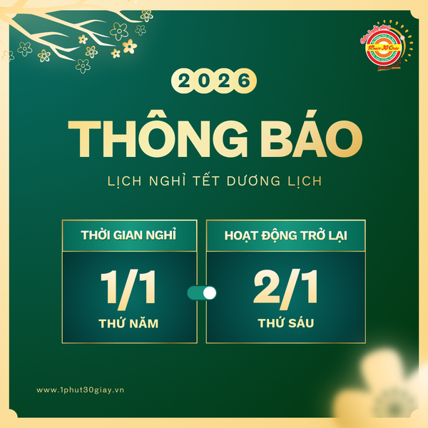Lịch nghỉ Tết Dương Lịch 2026 của 1 Phút 30 Giây